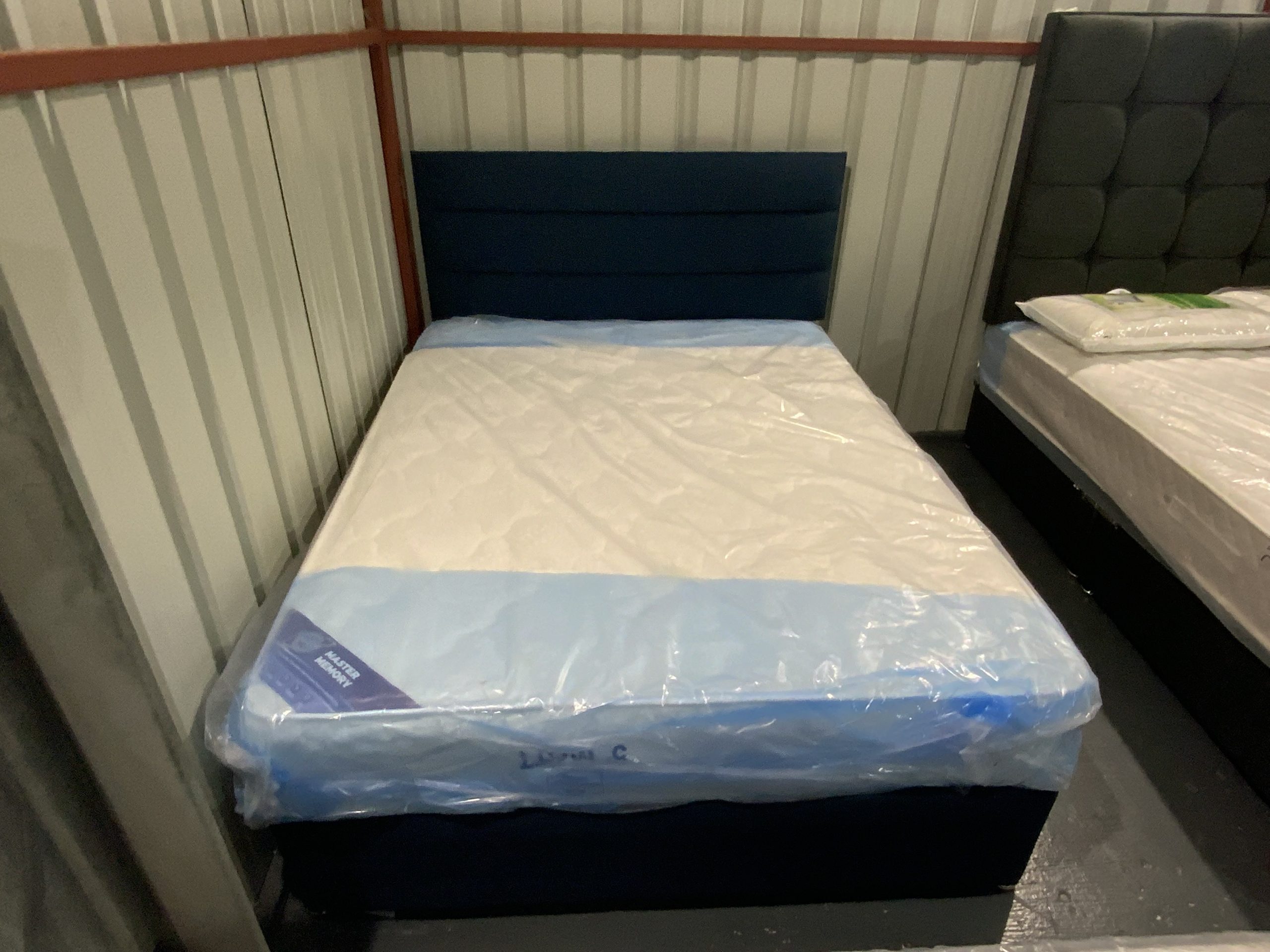 5ft king size navy blue divan bed with headboard +memory foam mattress
