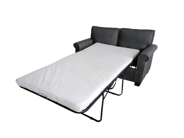 Grey fabric sofa bed.