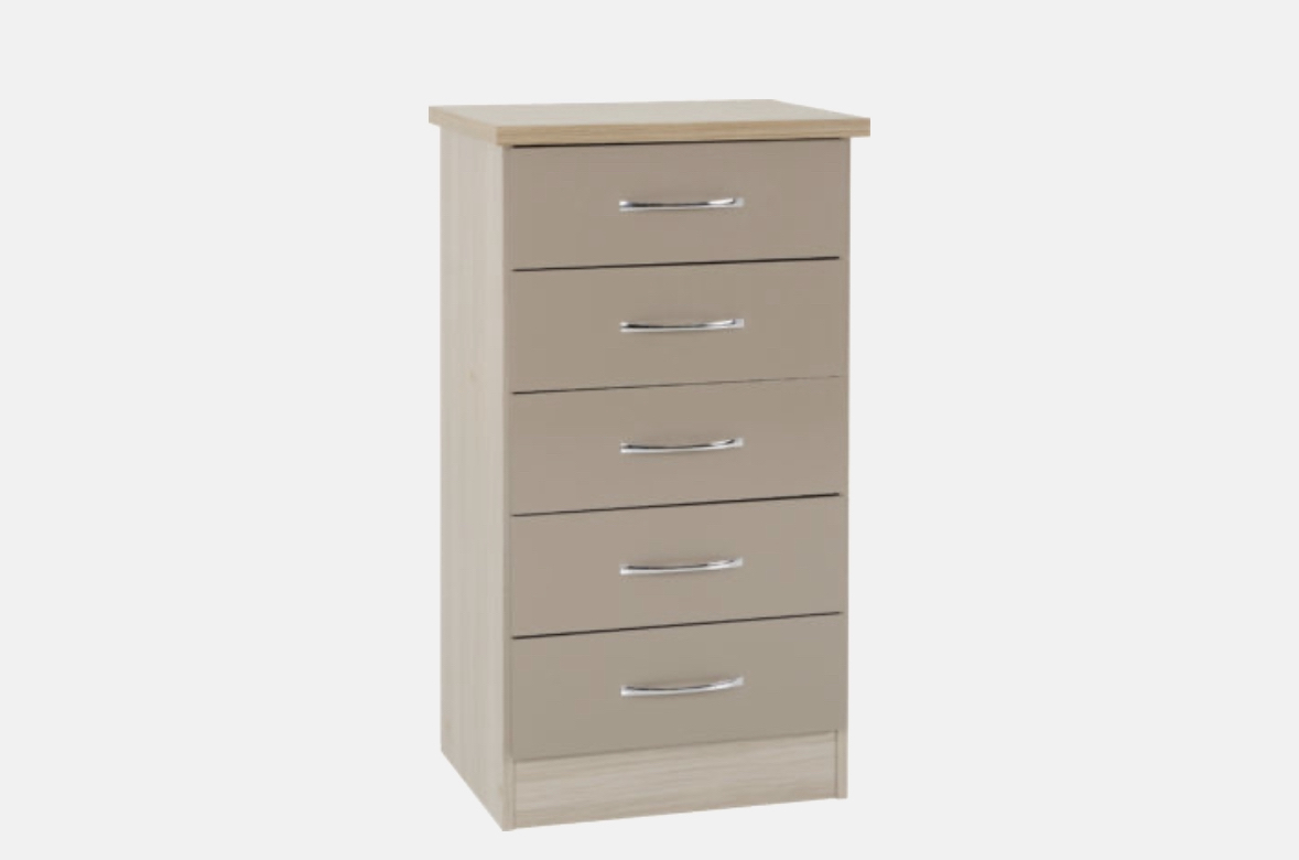 Grey r oyster 5 drawer narrow Nevada chest of drawers