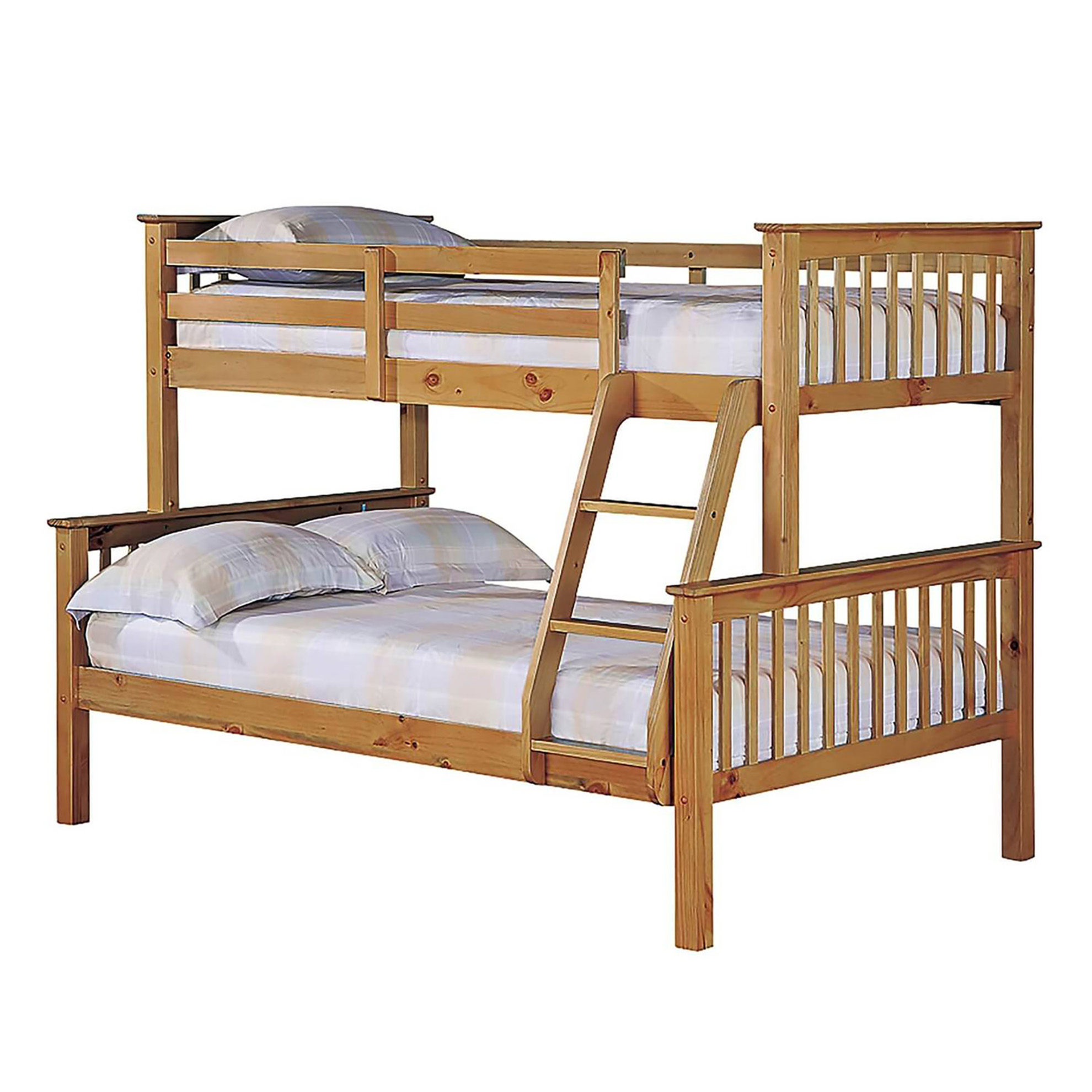 NEW HONEY PINE TRIPLE SLEEPER BUNK BEDFRAMES WITH 4FT6 DOUBLE BED ON BOTTOM 3FT SINGLE BED ON TOP